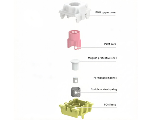 This switch utilizes magnetic induction technology, enabling ultra-fast response times, adjustable actuation distance, and an exceptionally long lifespan of over 100 million keystrokes. Its smooth feel and stable performance are loved by many gamers.This model also comes in an RGB Polar Magnetic Keyboard Switch PRO+ version with lighting effects. Please click the link to see more details.